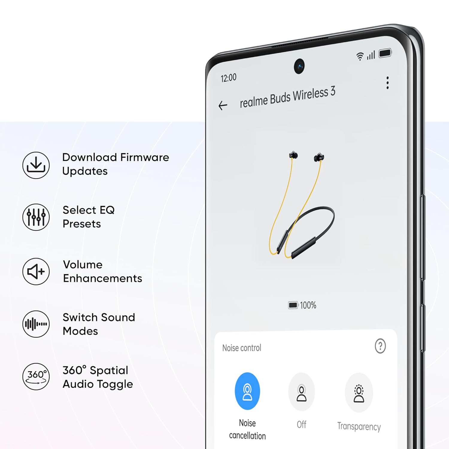 realme Buds Wireless 3 in-Ear Bluetooth Headphones,30dB ANC, Spatial Audio,13.6mm Dynamic Bass Driver,Upto 40 Hours Playback, Fast Charging, 45ms Low