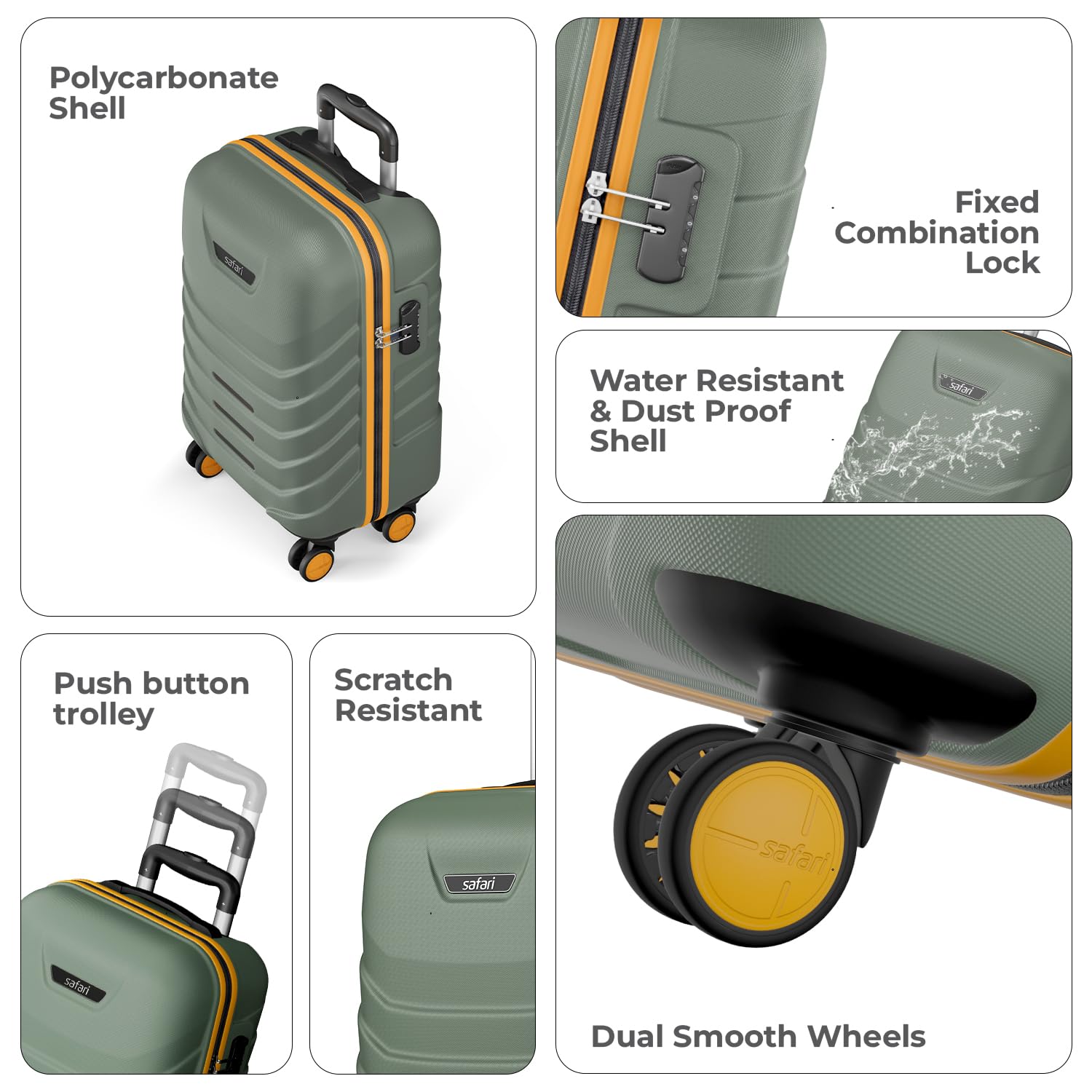 Durable Construction: Crafted from Polycarbonate material, the trolley bag is designed to withstand the rigors of travel. A combination of strength, style and lightweight design, makes this suitcase, the preferred luggage for travel.