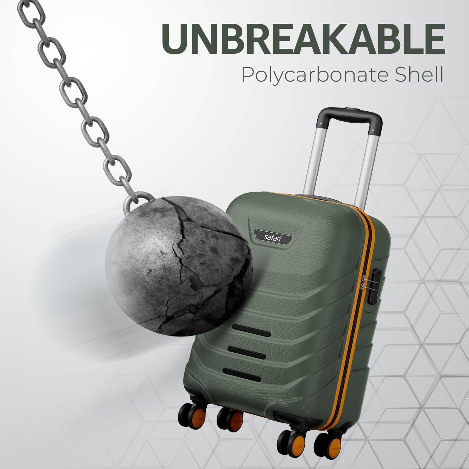 Safari Crescent 8 Wheels 56cm Small Cabin Trolley Bag Hard Case Polycarbonate 360 Degree Wheeling System Luggage, Travel Bag, Suitcase for Travel, Trolley